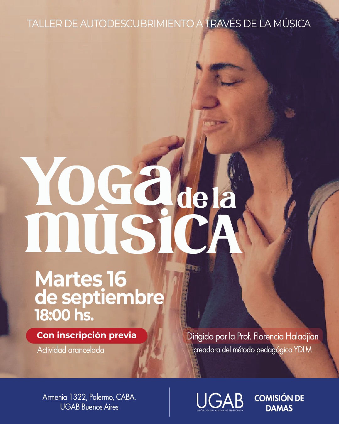 La Prof. Florencia Haladjian, creadora del método pedagógico YDLM, nos guiará para utilizar la música como camino de autoconocimiento, liberación emocional y encuentro con los demás.