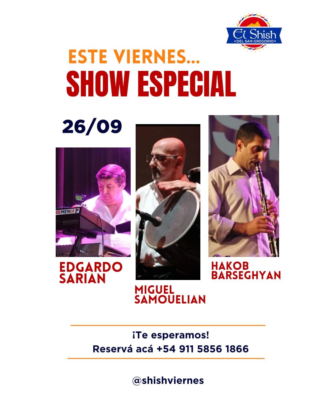 Este viernes 26-9 habrá show especial de música armenia en el «Shish del San Gregorio».
