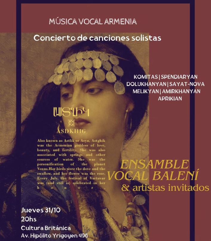 El Ensamble vocal Baleni tiene el agrado de presentar un fascinante ciclo de canciones solistas, que llevará al público en un viaje por las melodías trovadorescas armenias del siglo XVIII hasta composiciones contemporáneas.