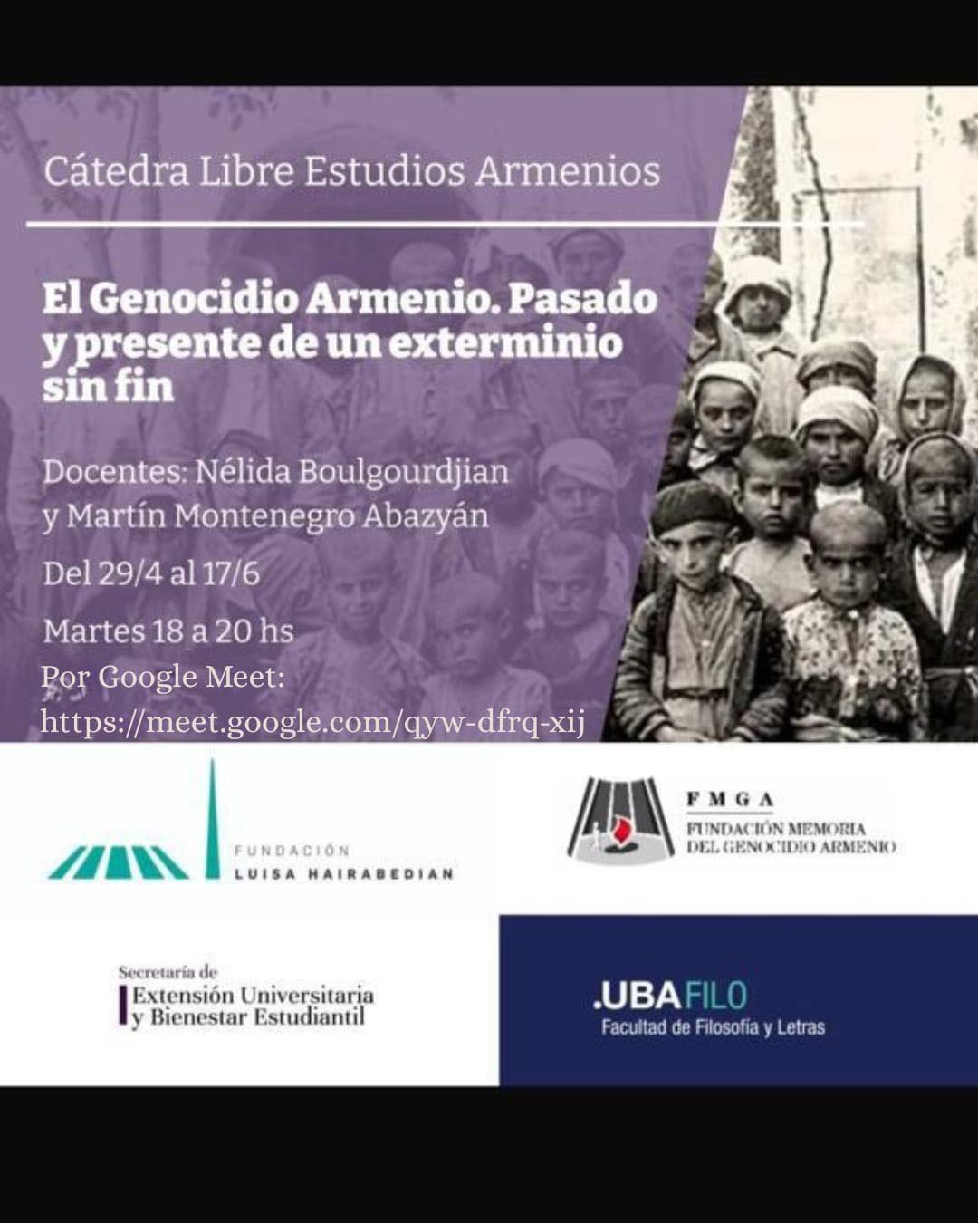 «El Genocidio Armenio. Pasado y presente de un exterminio sin fin», seminario abierto y gratuito a partir del martes 6 de mayo hasta el 17 de junio, por Meet.
