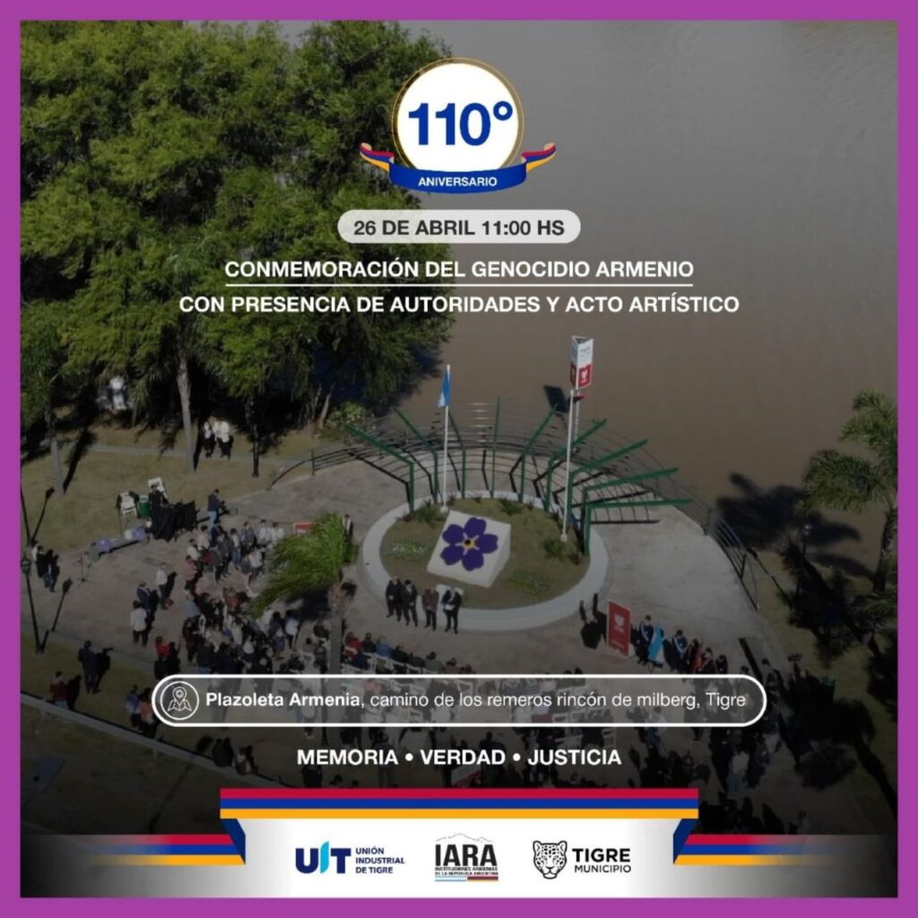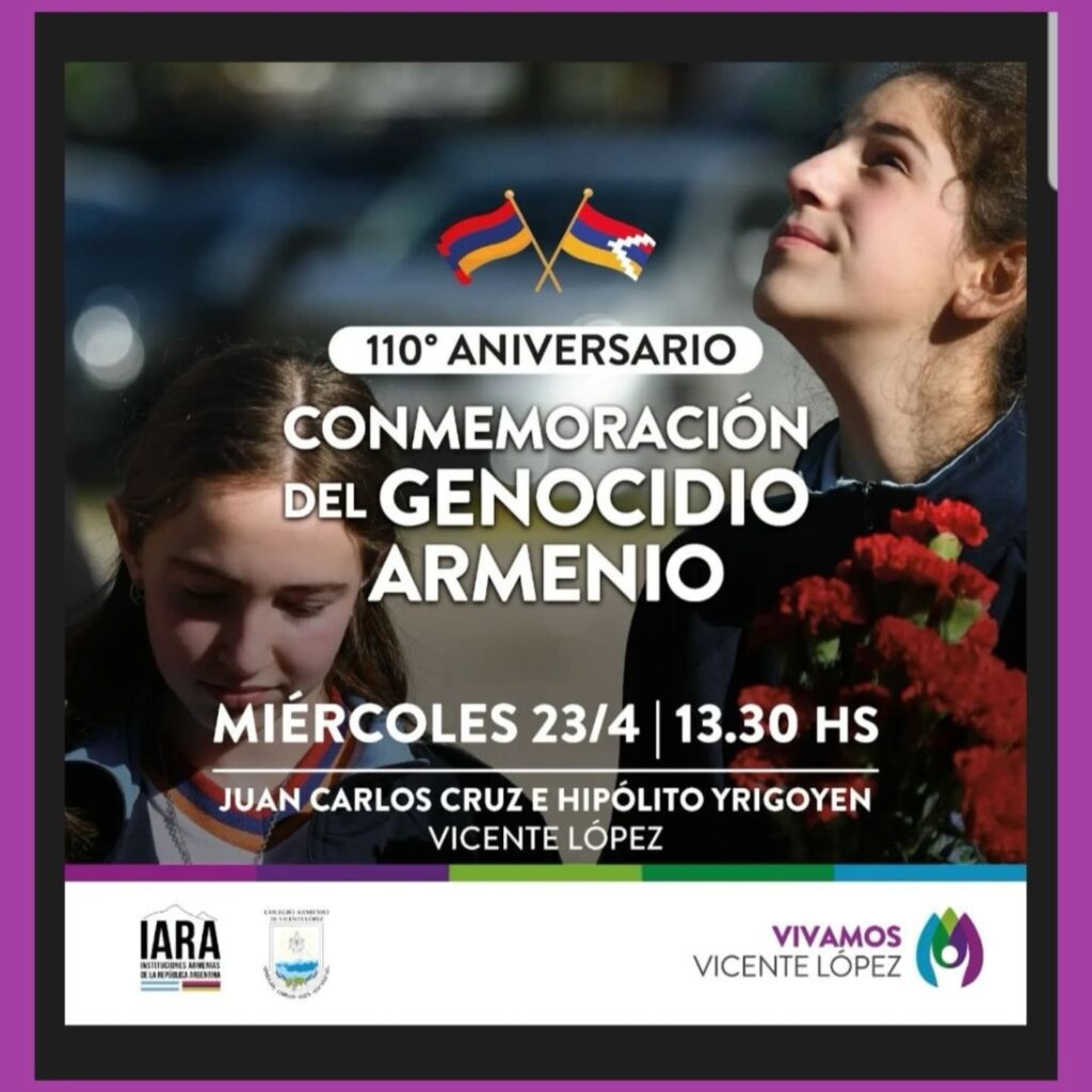 Lanzan decenas de actos por el 110° aniversario del Genocidio Armenio Se extenderán del 21 al 28 de abril, aunque el 24 de abril es el Día de Acción por la Tolerancia y el Respeto entre los Pueblos, como establece la ley 26.199 sancionada en 2007 por el Congreso nacional en reconocimiento de ese crimen de lesa humanidad.