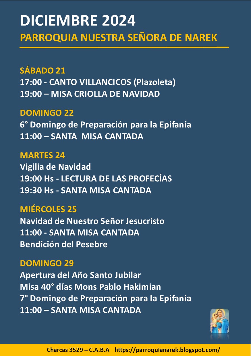 PROGRAMACIÓN PARROQUIAL DICIEMBRE 2024.