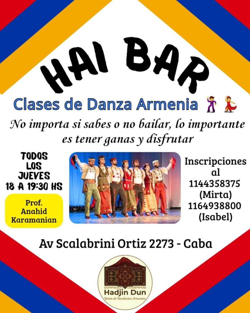HAI BAR : LLEGÓ TU OPORTUNIDAD PARA APRENDER DANZA ARMENIA.  A partir del próximo Jueves 3 de Julio, vas a tener la posibilidad de disfrutar de esta danza milenaria en nuestra sede.  No se requiere experiencia previa, ni cierta edad, están todos invitados .  Consultá por tu Inscripción Mirta (1144358375) Isabel (1164938800)  Te esperamos todos los…