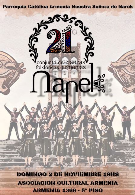 Conjunto Narek:  La tradición vuelve a hacerse presente en una sola noche, un recital que une pasado y presente en cada paso, donde la fuerza de 21 años cobra vida en el escenario.  Domingo 2 de Noviembre. En Armenia 1355, Asociación Cultural Armenia, 5to Piso, CABA. GUÍA ARMENIA MENC: https://guiamenc.com