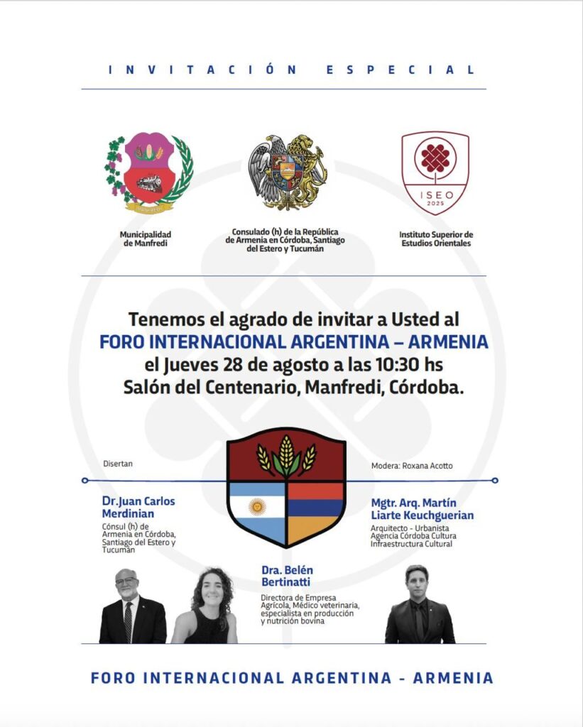 28 DE AGOSTO, 10.30 HS: EL CONSULADO ARMENIO EN CÓRDOBA INVITA A FORO ECONÓMICO ARGENTINA-ARMENIA.