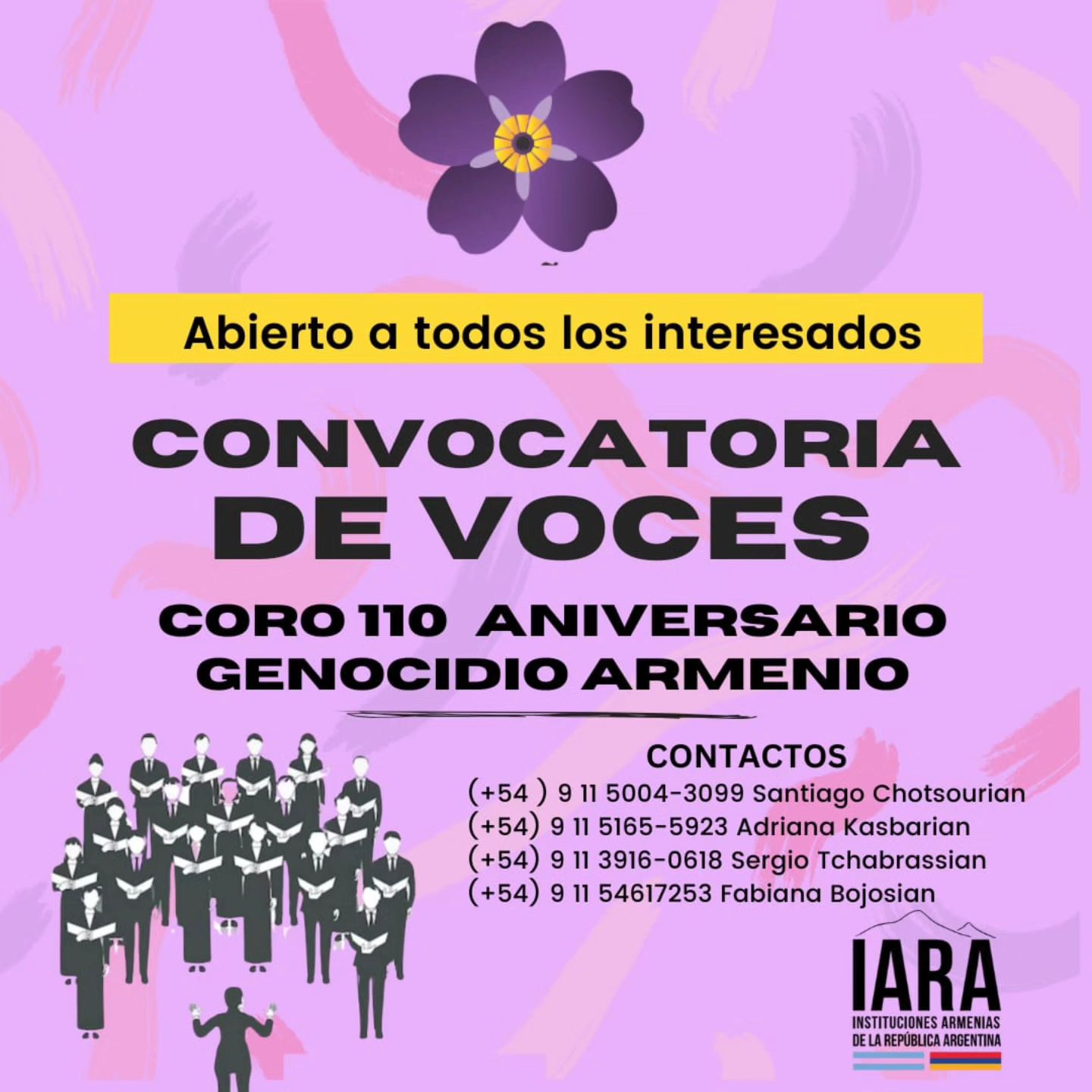 En el marco del 110° Aniversario del Genocidio Armenio, se está formando un coro para participar en el acto central.