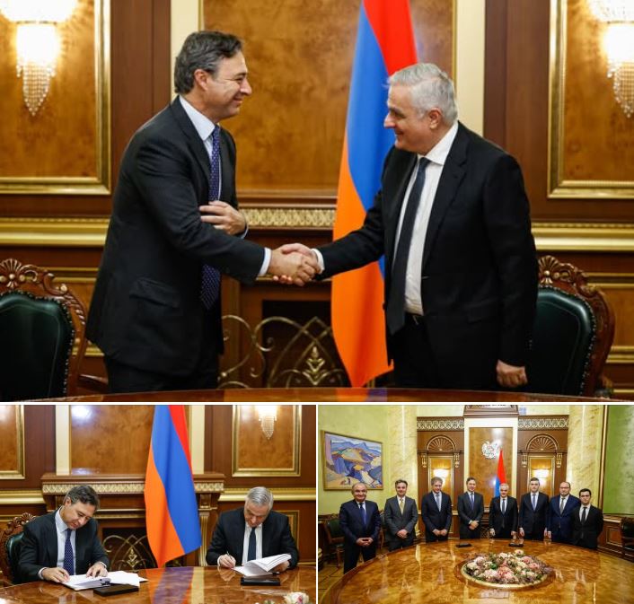 El Viceprimer Ministro de Armenia, Mher Grigoryan, y el Director General de Corporación América SA, Martín Eurnekian, se reunieron este viernes en Ereván y firmaron la quinta enmienda al acuerdo de concesión.