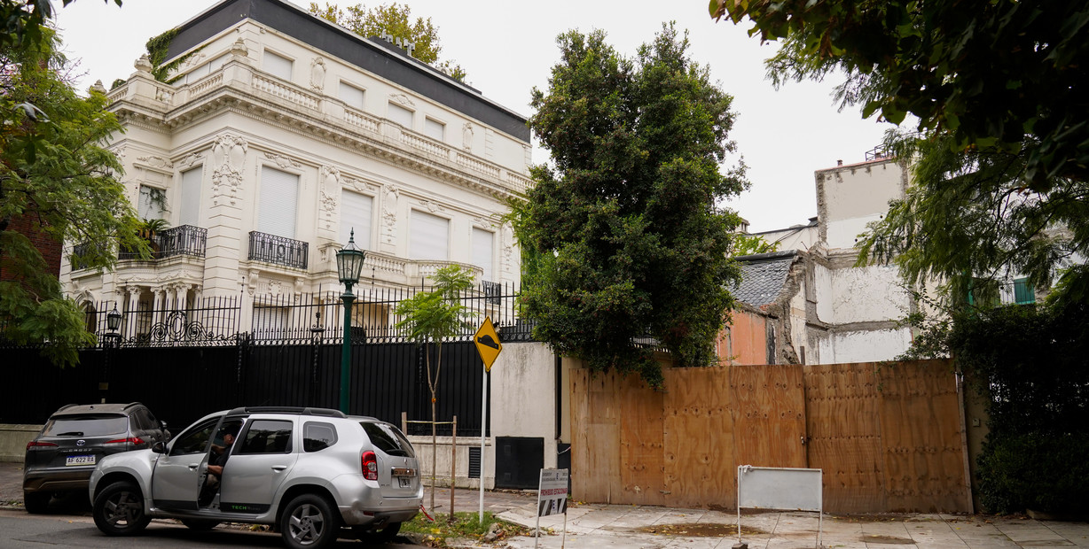 La casona histórica de Barrio Parque en la que un cartel demolición del terreno contiguo encendió las alarmas – Maxi Failla. Se la conoce como Casa Obarrio o Palacio Bergamali. Los detalles del proyecto en una zona con vecinos en alerta por la construcción en altura.