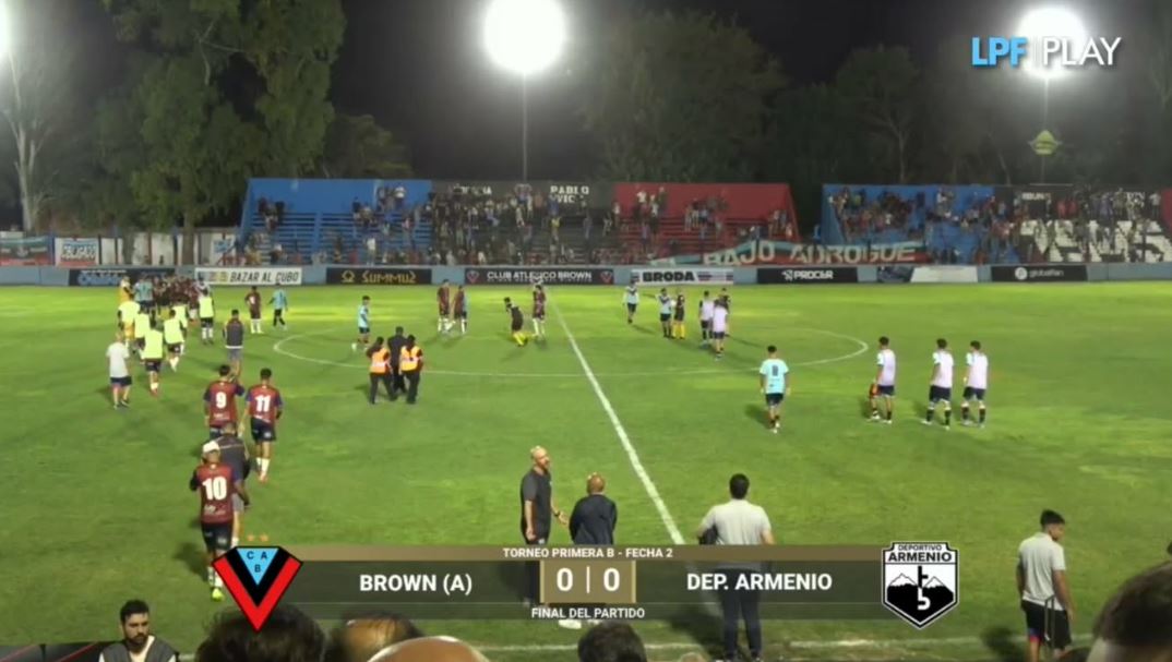 El partido finalizó sin goles, con Brown (A) teniendo un 47% de posesión frente al 53% de Armenio.