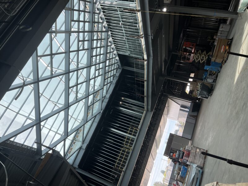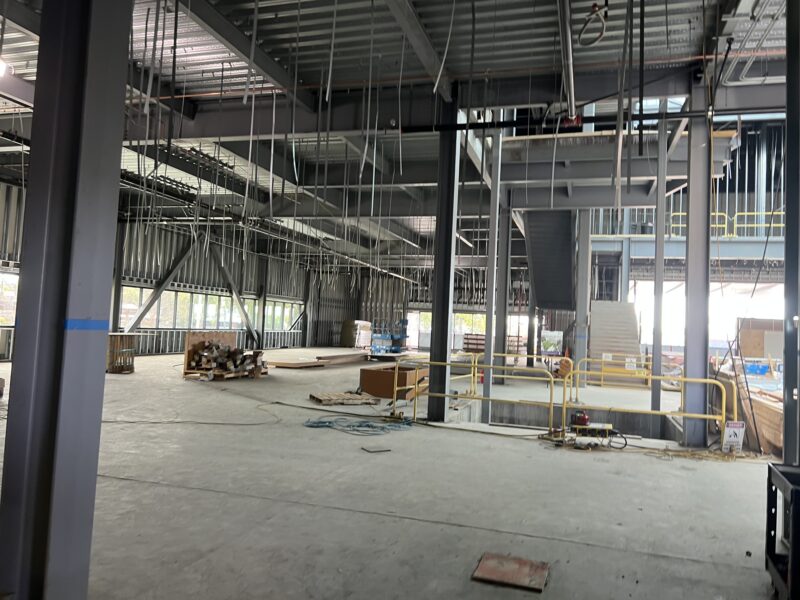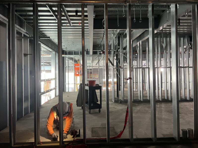 Explicó que la fase de cerramiento de la estructura ya había concluido, lo que significa que el tejado y otros elementos habían sellado el edificio desde el exterior, de modo que ahora se podían colocar las paredes y terminar el interior.
