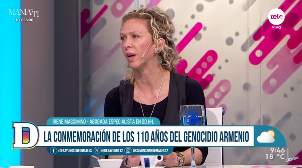 Invitada por el Consejo Causa Armenia del Uruguay, la abogada argentina Irene Victoria Massimino fue el pasado miércoles una de las exponentes en la Sala de Eventos Especiales del Palacio Legislativo en el acto en conmemoración del 110° aniversario del comienzo del genocidio perpetrado contra el pueblo armenio por parte del Imperio Otomano.