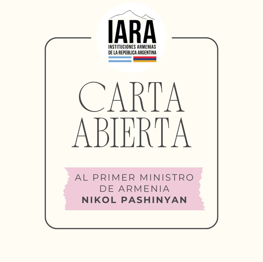 IARA, la entidad que coordina a las instituciones armenias de Argentina, dirigió una carta abierta al primer ministro de Armenia, Nikol Pashinian, que fue entregada en la Embajada de Armenia en Argentina, en español y en armenio. A continuación reproducimos su contenido: