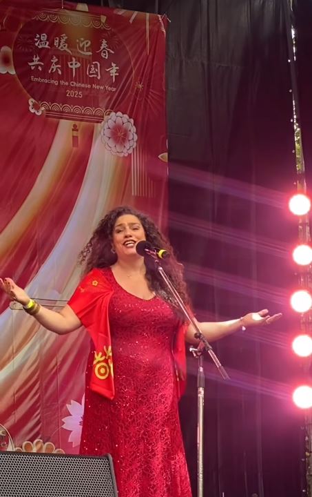 «Año Nuevo Chino 2025, serpiente de madera. Feliz y agradecida a @phoenixdorada que desde hace ocho años me convoca para cantar en esta importante celebración. Gracias por la confianza y el cariño. ¡Que sigan los éxitos!»